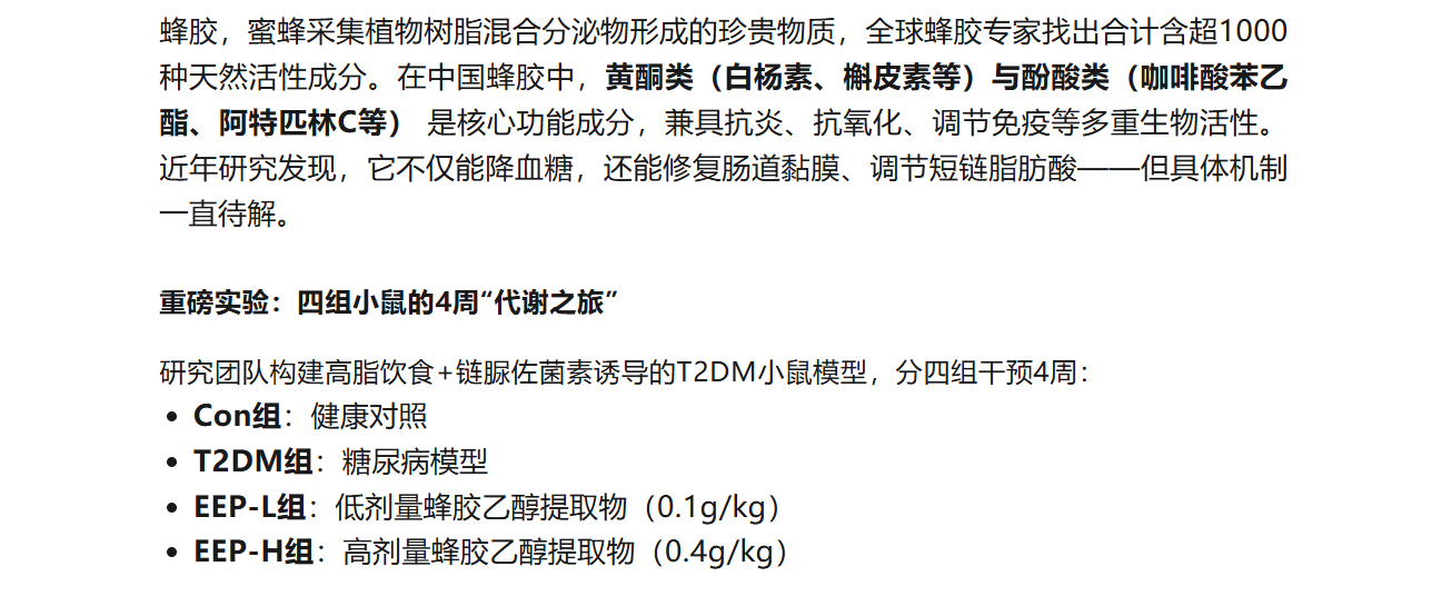 【科研速遞】蜂膠乙醇提取物如何“修復”糖尿病?糞便代謝組學揭開關鍵機制!
