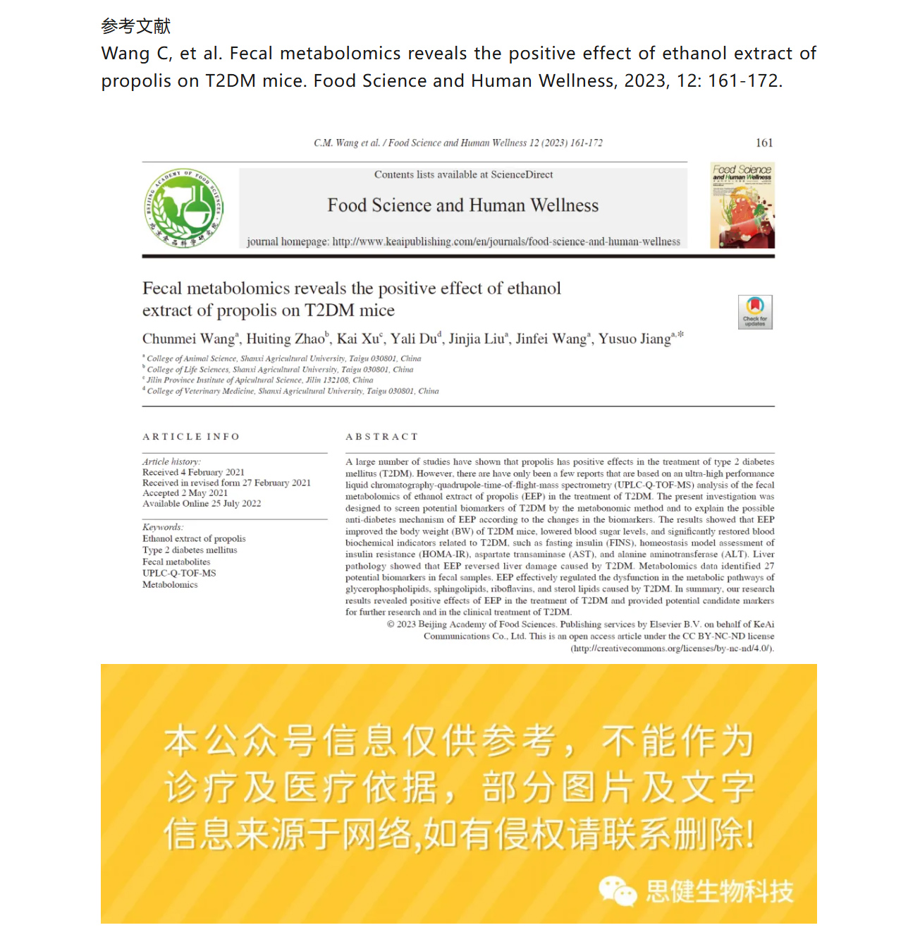 【科研速遞】蜂膠乙醇提取物如何“修復”糖尿?。考S便代謝組學揭開關鍵機制!